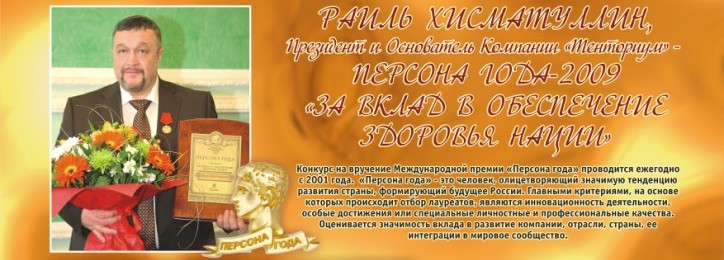 ПЕРСОНА ГОДА-2009 «ЗА ВКЛАД В ОБЕСПЕЧЕНИЕ ЗДОРОВЬЯ НАЦИИ»